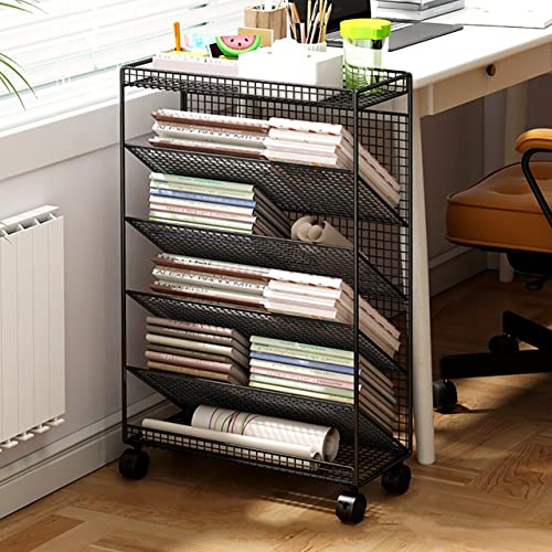 Generic Black Shelf Book Cart with Lockable Casters - Multi-Functional Rolling Library Cart