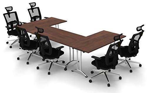 TeamWORK Tables 6 Person 3 Tables Set Model 5423 - 9 Piece Conference Meeting Seminar Tables & Chairs BIFMA Commercial Adjustable Manager Chairs - Black Chairs/Java Tables