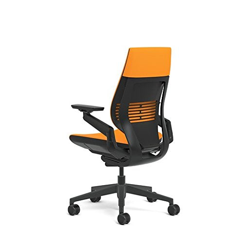 Steelcase Gesture Office Chair - Cogent Connect Tangerine Upholstered Wrapped Back Black Frame Medium Seat Black Seat/Back/Arms Hard Floor Caster Wheels $1,272.00