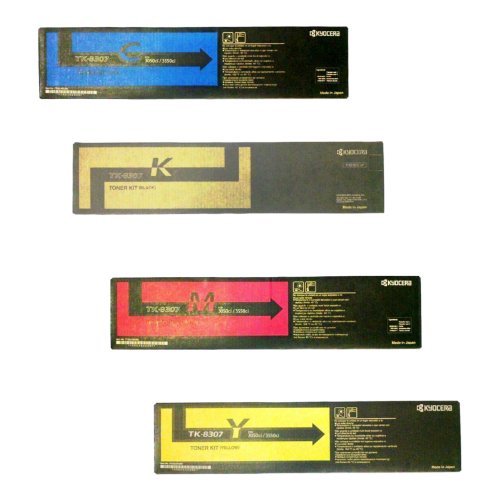 "Kyocera TK-8307K TK-8307C TK-8307M TK-8307Y Toner Cartridge Set (Black Cyan Magenta Yellow) in Retail Packaging
