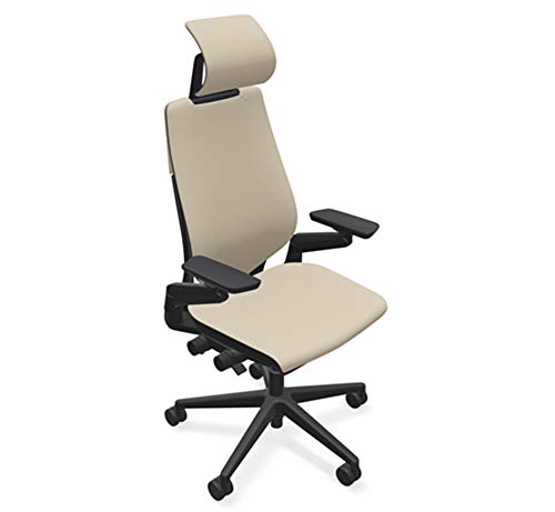 Steelcase Gesture Office Desk Chair with Headrest in Elmosoft Genuine Mica L114 Leather - High Black Frame
