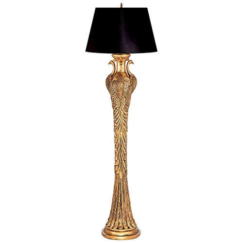 Design Toscano Peacock Panorama Floor Lamp, 65 Inch, Faux Gold with Black Fabric Shade $568.86