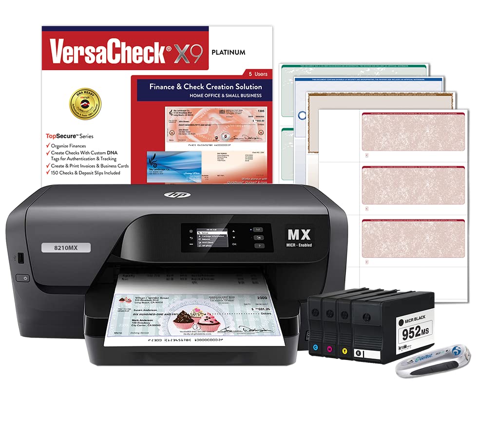 VersaCheck OfficeJet Pro 8210 MX MICR Check Printer and VersaCheck X9 Platinum 5-User Check Printing Software Bundle