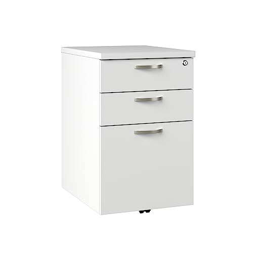 Bush Business Furniture Office in an Hour 3 Rolling File Cabinet | Mobile Under Desk Drawers - Pure White