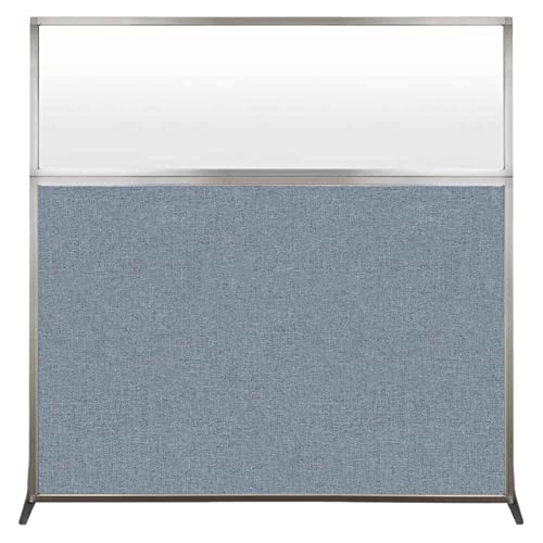 VERSARE Hush Screen Freestanding Divider | Frosted Window | Standalone Partition | Office Workstation | 6'x6' | Powder Blue Fabric Panels