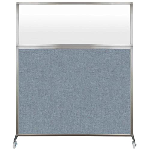 VERSARE Versare Hush Screen Portable Divider | Frosted Window | Freestanding Partition On Wheels | Rolling Office Workstation | 6' Wide x 6' Tall Powder Blue Fabric Panels
