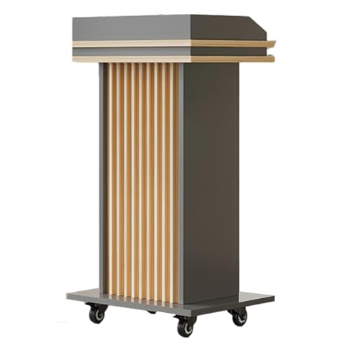 MPOWRX Mobile Laptop Podium with Wheels, Dark Gray & Natural - Modern Pulpit for Hospitality & Worship