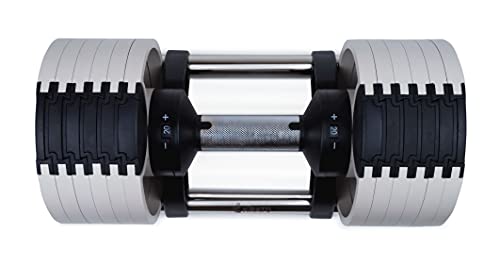 Krato Single Adjustable Dumbbell (20kg/44lb) by ROBURFLEX for Workout Strength Training Fitness Home Gym - Space White color