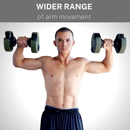 - SMART DESIGN: Traditional adjustable dumbbell length remains fixed even with smaller weights. The adjustable dumbbell's length reduces with lower weight selection, providing you a wider range of arm movement. The vibrant colors with matte finish blends anywhere in your home.
